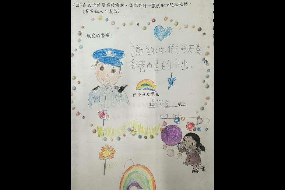 一年級同學在參觀期間表現投入,主動嘗試,更寫上感謝卡答謝警察們。