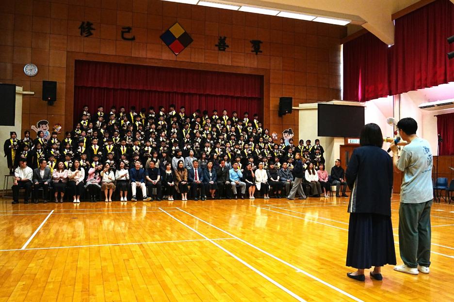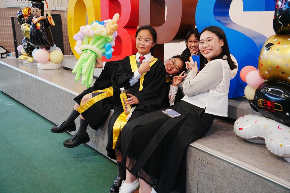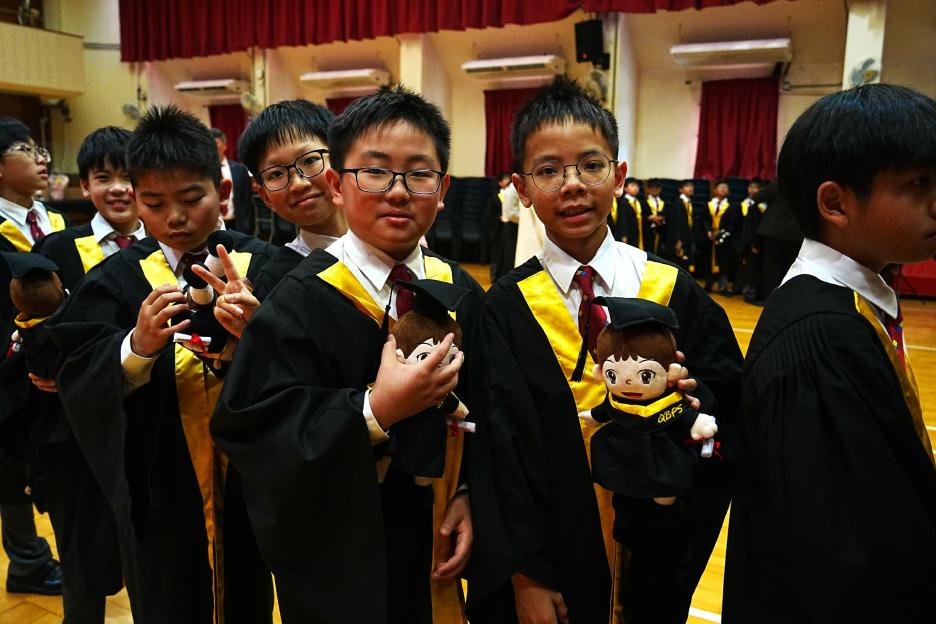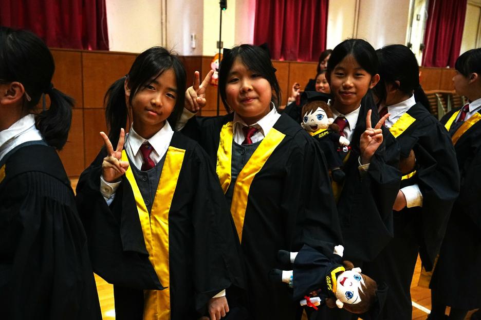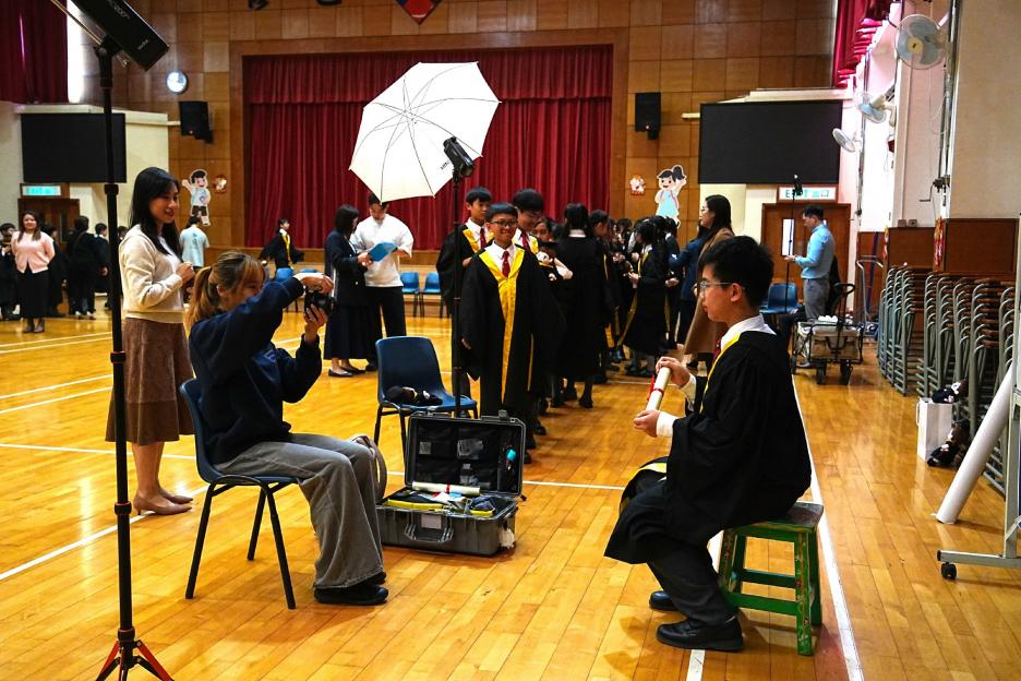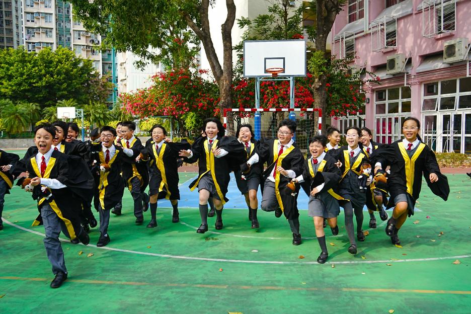 2月11日,陽光明媚,六年級同學穿上畢業袍,在校園各個角落與老師拍照留念,笑臉滿載、氣氛熱烈。 校長老師更成為「人氣王」,同學與家長們紛紛排隊合照!