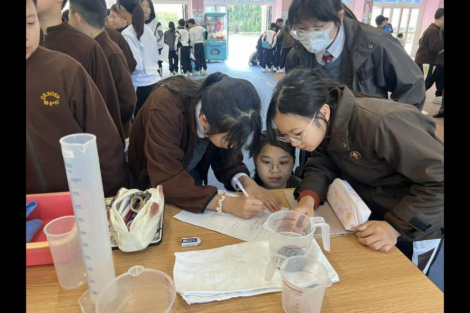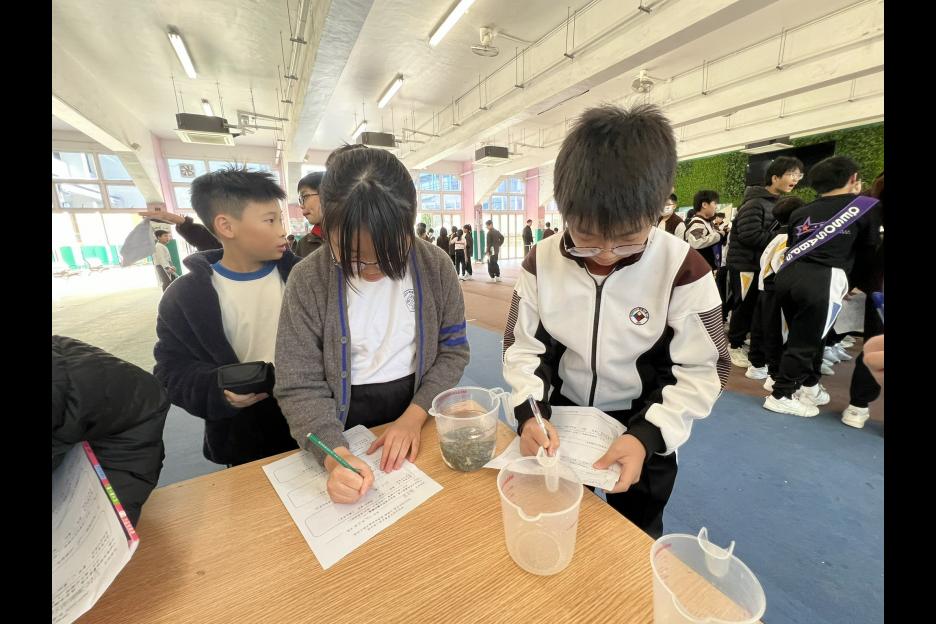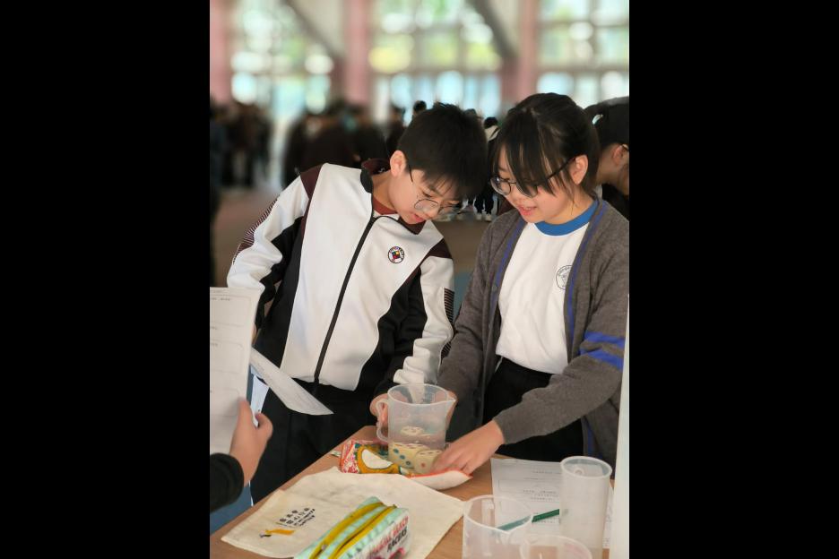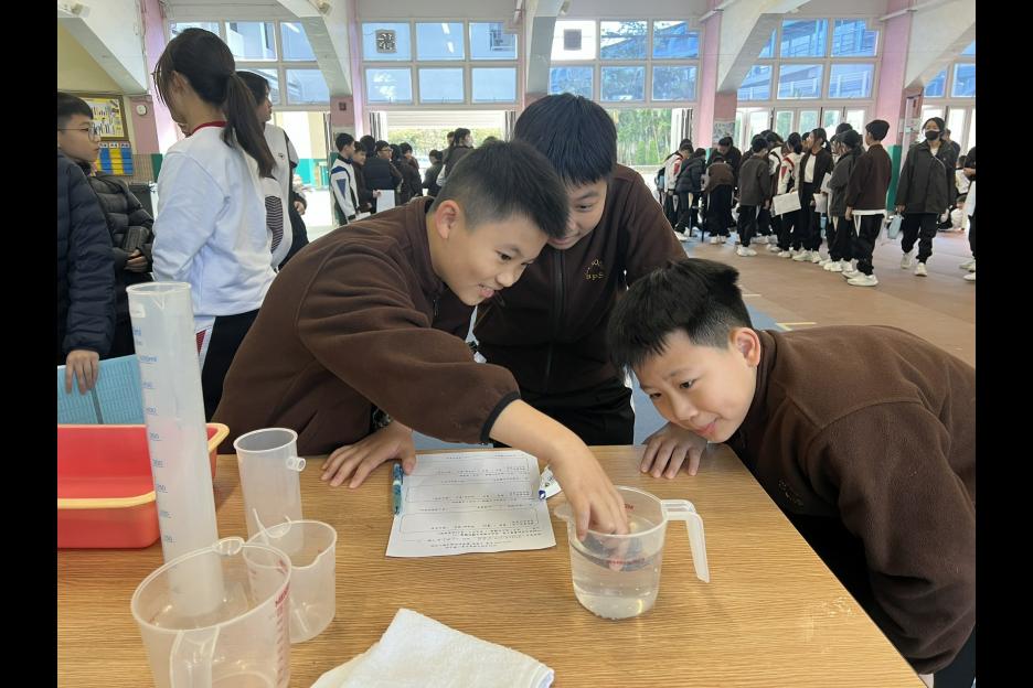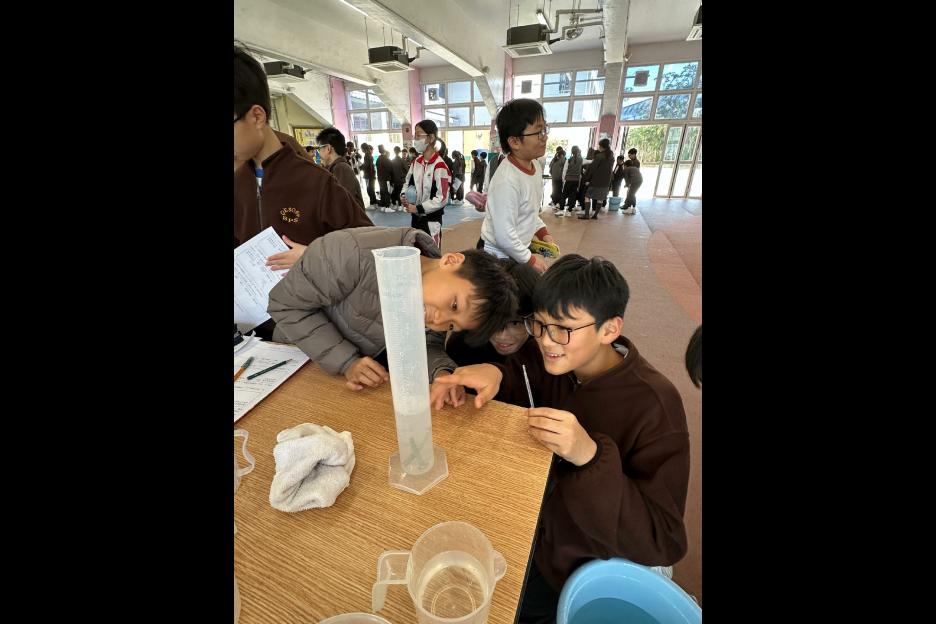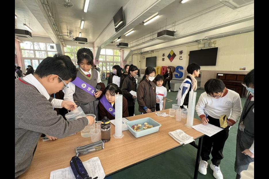 活動簡介 | 六年級同學進行科務活動:「量度不規則立體體積」,同學們利用不同的量具工具(量杯、量筒、滿溢瓶等)量度不規則立體的體積,同學需因應不規則立體的大小、形狀、浮沉的特性從而決定運用那種量具工具進行體積量度,過程中同學運用觀察、分析、實際操作等技能,能提升學生的邏輯思維、解難及溝通協作能力,同時培養學生認真及堅毅的態度。 |