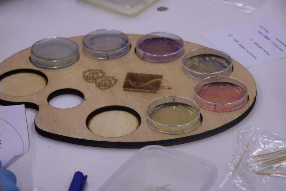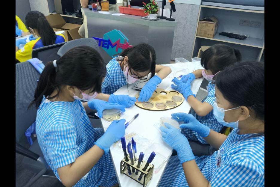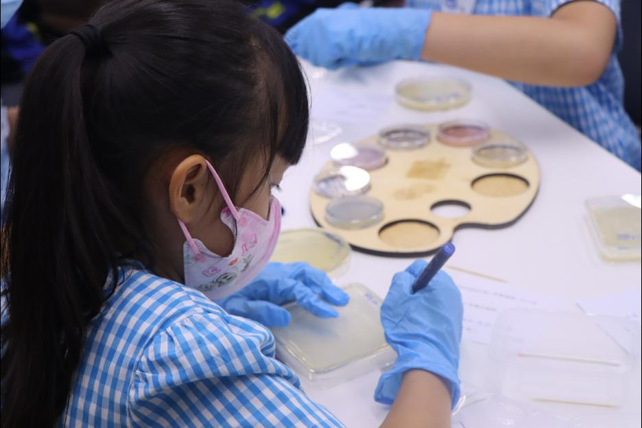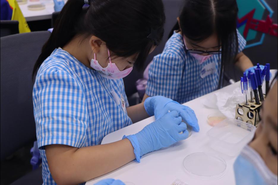 同學們參加了由嗇色園生物科技流動實驗室舉辨的「國際瓊脂藝術大賽2025(選拔賽)」。過程中,同學透過特定模式培養微生物,運用瓊脂板作為畫布,並利用有色的細菌作為「顏料」來創作藝術作品。同學們表現都很專注和投入。