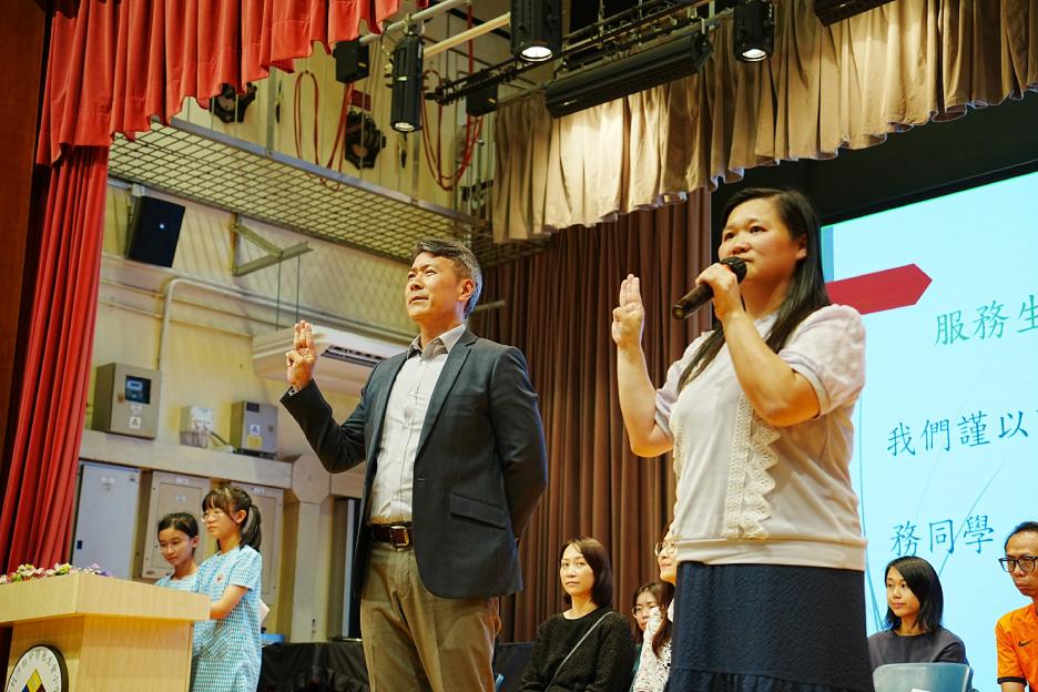 9月29日是十四隊服務團隊的就職儀式,校長以「感恩為我們服務的人」為主題,勉勵各位要在學校崗位上、在日常生活中、在言行舉止都好好準備,為同學建立良好和專業的榜樣,也要學會照顧身邊的親人、朋友、鄰里、社區等,成為良好子女和公民,熱心服務社區。