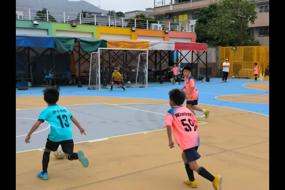 本校的足球隊員們與通德學校進行了友誼賽,讓低年級隊員有機會體驗五人足球比賽的感受。