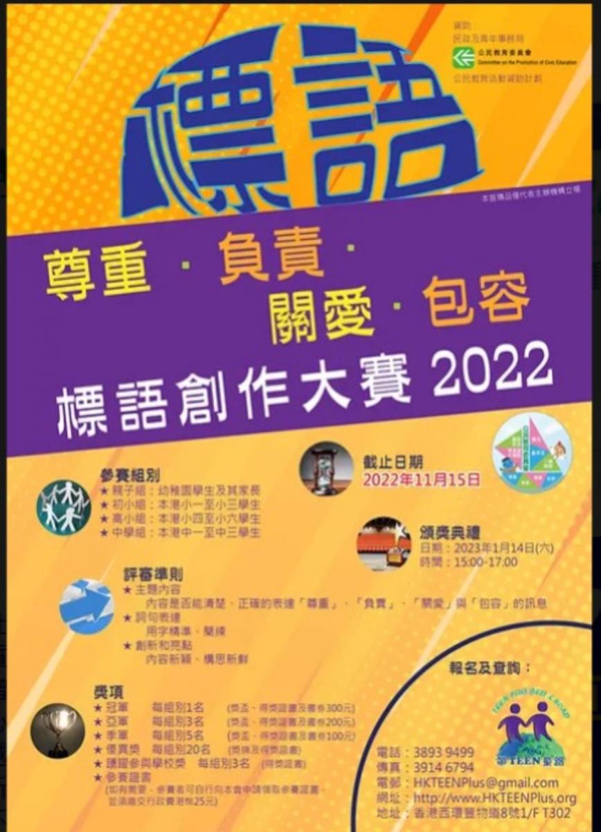 「尊重. 負責. 關愛. 包容.」標語創作大賽