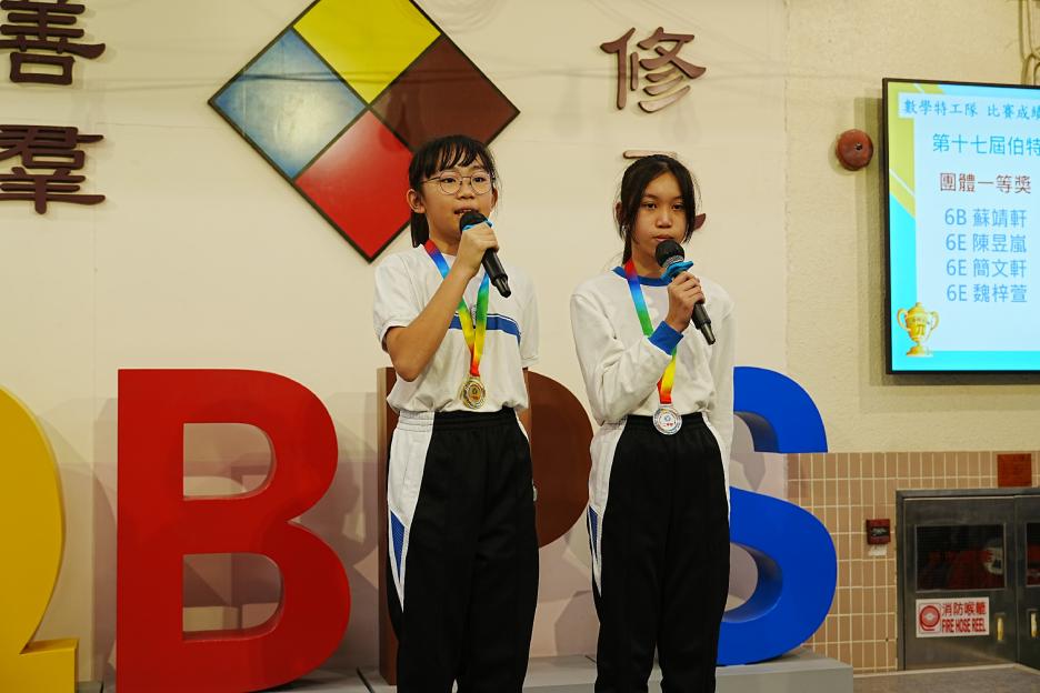 今天是普通話早會。首先,我校六年級數學特工隊一共十二位同學在11月15日參加由伯特利中學舉辦的第十七屆數學多元挑戰賽,我們在團體比賽中,一共奪得一個一等獎和兩個二等獎。接著,領袖生總隊長表揚及提醒全校同學最近的行為表現。別忘了,2025立法會換屆選舉將於12月7日(日)進行投票,本校《憲法》和《基本法》 學生校園大使於早會鼓勵各位同學積極參與相關的填色比賽,並回家呼籲家長於當天踴躍投票。最後,是「Marty 比賽投票」宣傳。