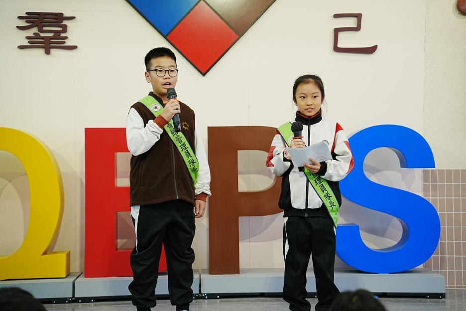 今天是英文早會。首先由English Buddies為我們帶來一系列聖誕歌曲,預祝大家聖誕節快樂!接著是班際借閱比賽頒獎,各班同學都努力借閱圖書,只要多借書、多閱讀,就能為班爭光,共享榮譽與獎品!另外,「25-26悦讀千里號獎勵計劃」計劃已啟航,同學一起讀,一起獎,探索書海無邊界。最後是魔力橋數學棋小學邀請賽初賽頒獎。