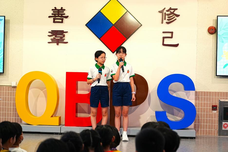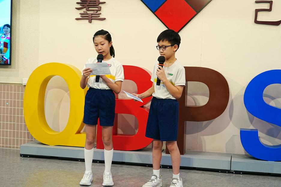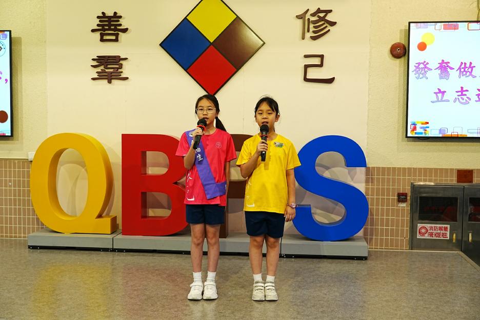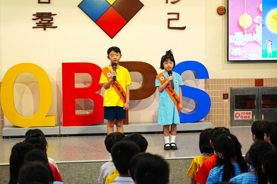今天是英文早會,也是颱風復課後的早會,歷過風雨,希望同學們更珍惜上學的日子。今天早會節目豐富,我校在華萃薪傳第五屆全港小學中國歷史文化問答比賽中,得到最積極參與學校獎、18區卓越表現獎元朗區第二名,派上代表領獎。再來由憲法和基本法學生校園大使介紹中國農民豐收節。接著是領袖生宣傳職責。最後是宣傳Greenstarter 獎勵計劃。