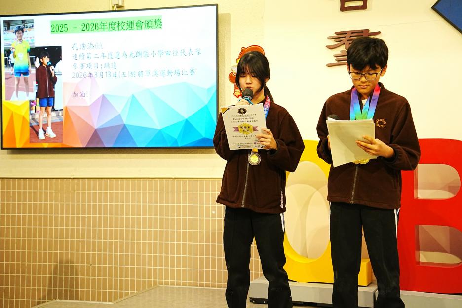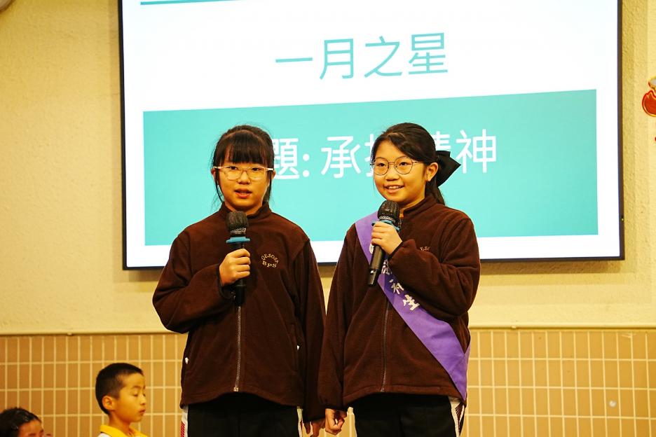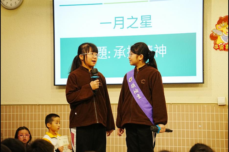 今天是普通話早會。首先進行每月之星的頒獎,這個月的主題是承擔精神,獲獎學生不但能盡力做好本份,更積極思考如何精益求精,值得讚賞。接下來是匹克球比賽及校運會頒獎,恭喜各位運動健兒!最後是中華文化日的宣傳。