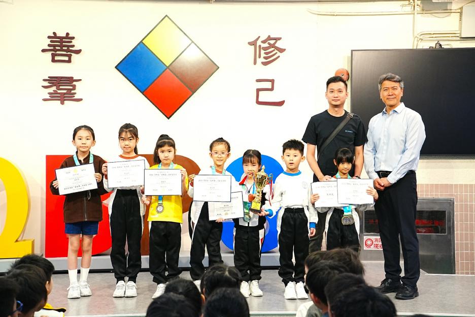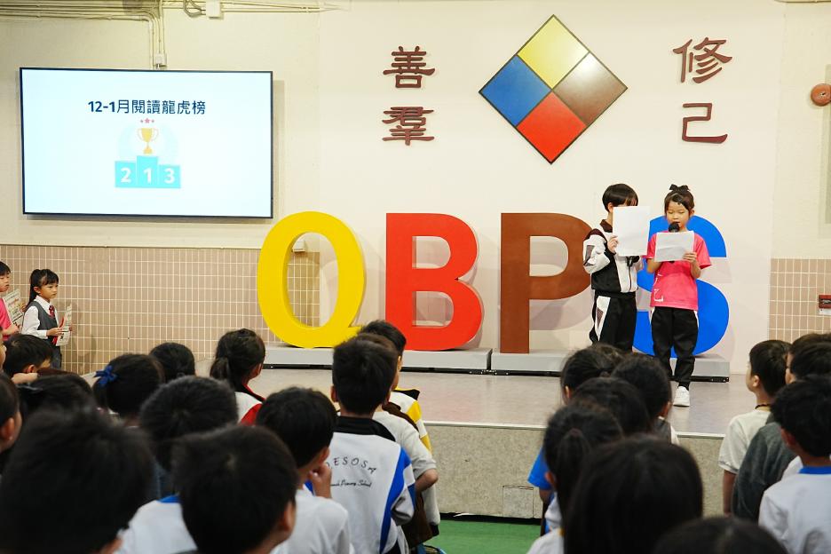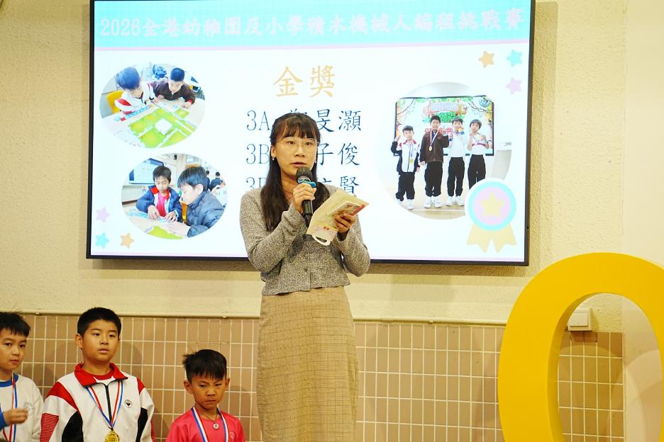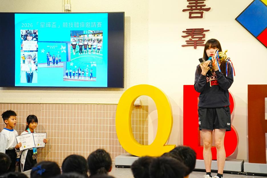 今天是英文早會,也是新年假期後的第一個早會。先祝大家新年快樂!身體健康!首先有英文科SPELLING BEE COMPETITION,獲獎同學分別來自二、三年級,他們在英文串字方面有出色的表演。接著是12-1月班際借書比賽頒獎,各班同學都努力借閱圖書,只要多借書、多閱讀,就能為班爭光,共享榮譽與獎品!午息齊齊讀活動開展了!放鬆的午息時間,大家可以到彩二一起輕鬆讀書。慢慢看、用心讀,快樂學知識,度過美好午息。最後是兩項頒獎,我校學生在2026全港幼稚園及小學積木機械人編程挑戰賽中得到金獎,以及在2026 「星輝盃」競技體操邀請賽取得佳績。
