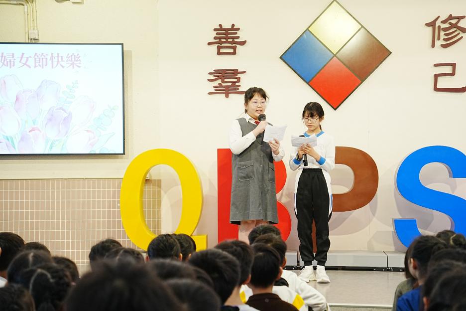 今天是普通話早會,也是元宵佳節。首先由普通話大使分享元宵節故事,接著是駐校作家智慧老人的分享,展示了我校中文科拔尖小組「課後之練筆術師」的創作過程,真令人期待最後的動畫成品呢!然後是數學科的頒獎,數學特工隊在第十二屆全港小學數學挑戰賽(2025-2026)得到佳績。最後是憲法大使介紹三八婦女節的由來,對默默付出的婦女們表達感謝。期望我們能做到男女平等,互諒互愛,做個有禮貌,有愛心的好學生。
